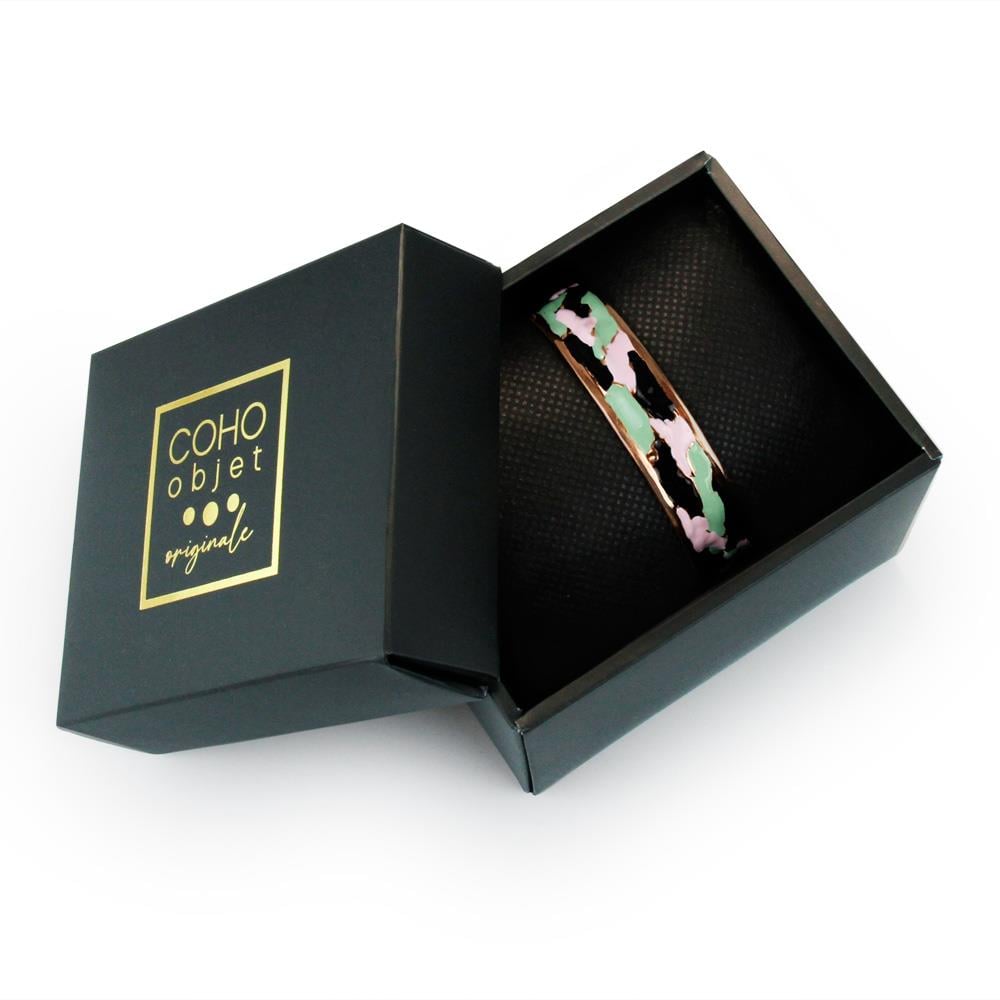 Bilekliğimiz özel COHO objet yaldız logo baskılı kutusu ile gönderilir.